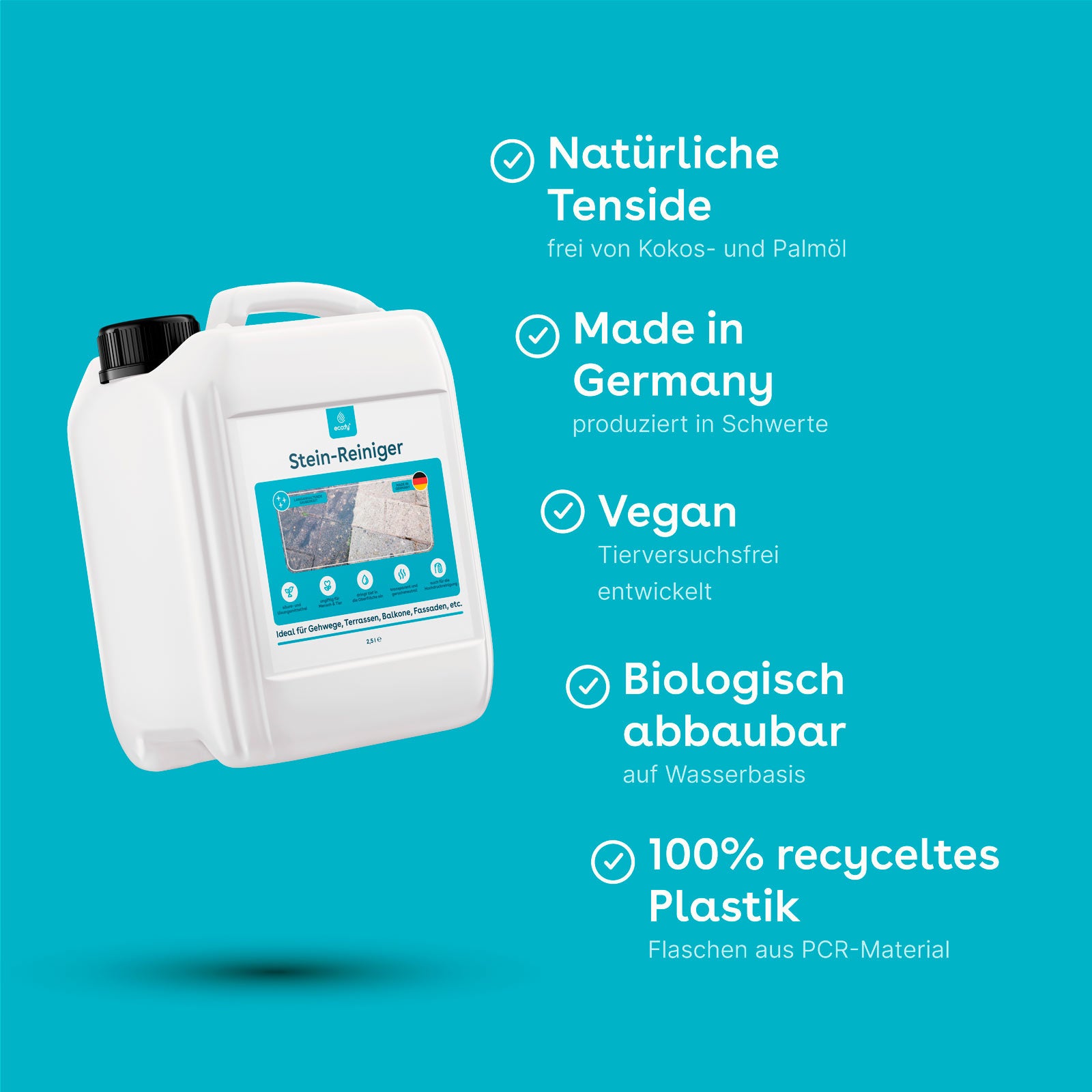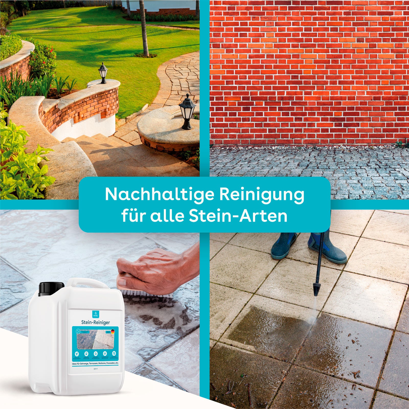Der Reiniger ist speziell für die Reinigung von Steinen und Steinfassaden, Gehwegen und Mauern entwickelt worden. Er eignet sich nicht für polierte Oberflächen. Mit diesem Reiniger kann man Sandstein, Klinkerfassaden, Naturstein, Terrassen, Beton und andere Oberflächen effektiv reinigen, auch bei starken Umweltverschmutzungen.